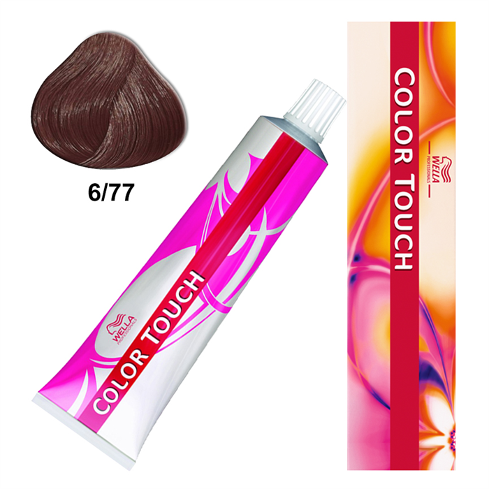 Color Touch 6/77 es un tinte semipermanente sin amoniaco que da un rubio oscuro con un matiz marrón intenso (castaño), no es un «rubio extra claro», sino un tono profundo que aporta brillo espectacular y cobertura de canas (hasta 50-70%), con fórmulas veganas y tecnología Metal Purifier para proteger el cabello, dejando un color vibrante y de bajo mantenimiento.